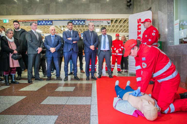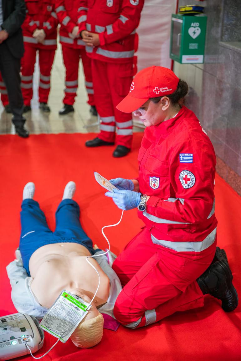 Ο Ελληνικός Ερυθρός Σταυρός παρουσίασε τη χρήση απινιδωτή στο Μετρό Συντάγματος