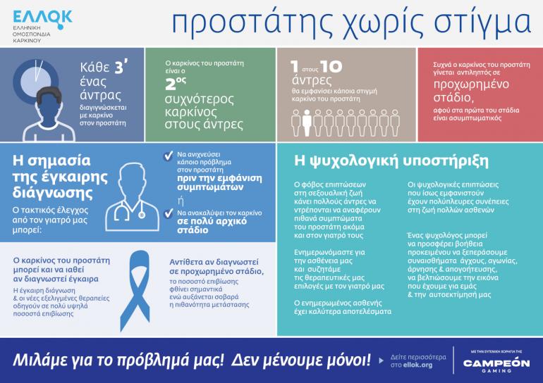 Η εκστρατεία ενημέρωσης και ευαισθητοποίησης για τον καρκίνο του προστάτη “προστάτης χωρίς στίγμα” θα είναι σε εξέλιξη όλο τον Δεκέμβριο και περιλαμβάνει ένα κεντρικό infographic με πληροφορίες για τη νόσο και ένα podcast που θα δημιουργηθεί στο πλαίσιο της σειράς podcast της Ελληνικής Ομοσπονδίας Καρκίνου με τίτλο “Ο ελέφαντας στο δωμάτιο”.
