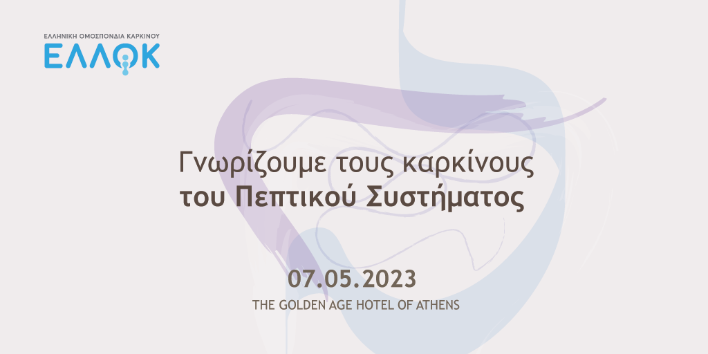 Μια εξαιρετική ημερίδα με αντικείμενο την ενημέρωση και την ευαισθητοποίηση για τους καρκίνους του πεπτικού συστήματος οργανώνει την Κυριακή 7 Μαΐου 2023, στην Αθήνα, στο ξενοδοχείο The Golden Age Hotel η Ελληνική Ομοσπονδία Καρκίνου - ΕΛΛΟΚ.