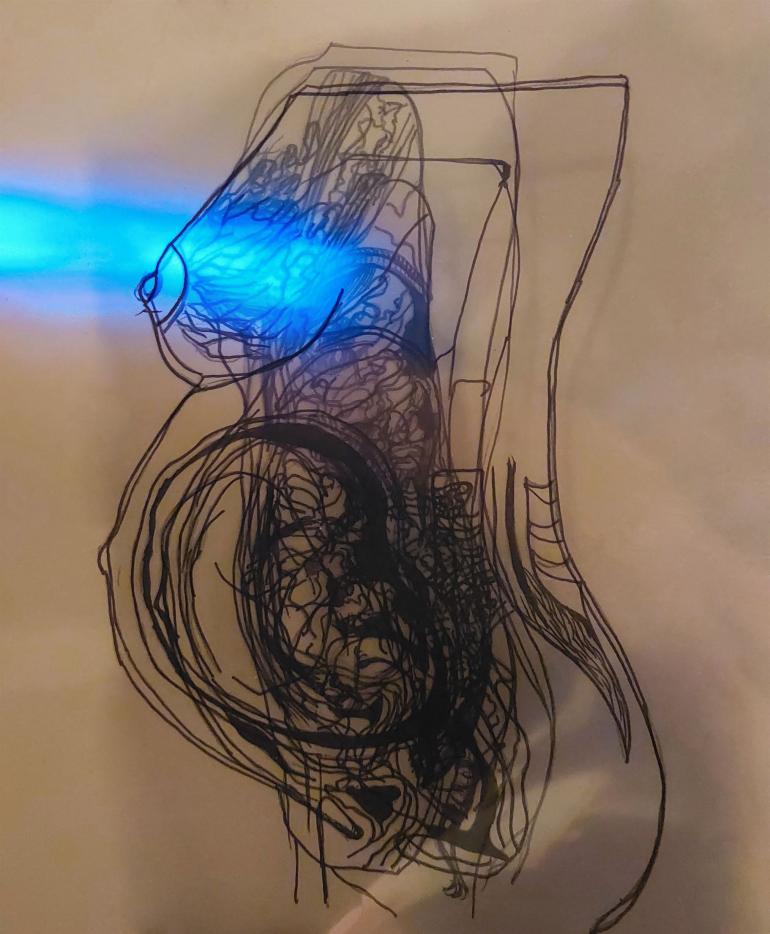 Ο Χάρης Κοντοσφύρης, εικαστικός, Καθηγητής της Σχολής Καλών Τεχνών Φλώρινας του Πανεπιστημίου Δυτικής Μακεδονίας & συντονιστής του εικαστικού εργαστηρίου υπογραμμίζει: «Με την αίσθηση της αφής διακρίνουμε απτικά με απλές κινήσεις την ομορφιά αλλά και την δυσμορφία των μαστών. Αυτή η απλή κίνηση, κυκλική και απεριόριστη, αποτελεί σταθμό για την συμβολική αποθέωση του στήθους ως τροφού και ως απέραντου ερωτικού καλέσματος. Αυτή η μοναδική εικόνα του γυναικείου στήθους ωσάν απείρου, θα ψηλαφιστεί για να ιχνηλατηθεί η αγάπη και η φροντίδα. Θα ψηλαφίζεται άπειρα από το βρέφος, από τον αγαπημένο αλλά και από τον γνωμοδότη μαστογράφο, με αυτήν την αμφίπλευρη απειροελάχιστη ενσαρκωμένη κυκλικότητα της ζωής και των κινδύνων της. Το άπειρο στην τέχνη είναι ένα εικαστικό κατόρθωμα γεωμετρίας, ένα μοτίβο ζωής και εν-συναίσθησης του απειροελάχιστου της ζωής, ικανό να ενεργοποιεί την υπενθύμιση της μαστογραφίας και της αυτοεξέτασης».