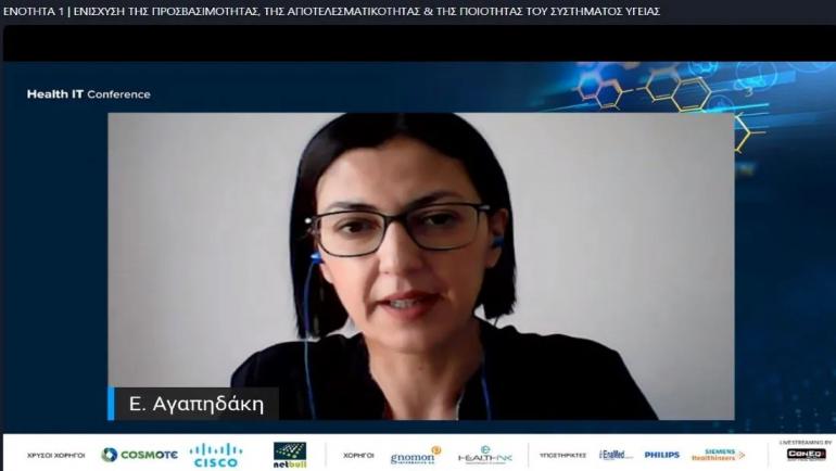 Από την πλευρά του ΕΟΠΥΥ παρουσίασε η Χριστίνα Γεωργακοπούλου, ΠΕ Πληροφορικής, MSc, Προϊσταμένη Δ/νσης Πληροφορικής ΕΟΠΥΥ τον Ψηφιακό Μετασχηματισμό στον ΕΟΠΥΥ, ο οποίος υλοποιεί ένα σύνθετο στρατηγικό σχέδιο ψηφιακού μετασχηματισμού το οποίο θα του επιτρέψει να αναβαθμίσει τις παρεχόμενες υπηρεσίες τόσο προς τους συμβεβλημένους παρόχους όσο και στο σύνολο των πολιτών της χώρα και τέλος ο Δημήτριος Ρούσσος, Προϊστάμενος Διεύθυνσης Πληροφορικής, Γ.Ν. Σύρου όπου παρουσίασε το Εθνικό Δίκτυο Τηλεϊατρικής (Ε.Δί.Τ.).