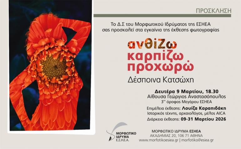 Η ιατρική και η τέχνη συναντώνται σε μια έκθεση φωτογραφίας με έντονο συμβολισμό και κοινωνική διάσταση. Η ογκολόγος-ακτινοθεραπευτής Δρ. Δέσποινα Κατσώχη παρουσιάζει τη νέα της έκθεση φωτογραφίας με τίτλο «Ανθίζω, Καρπίζω, προχωρώ».