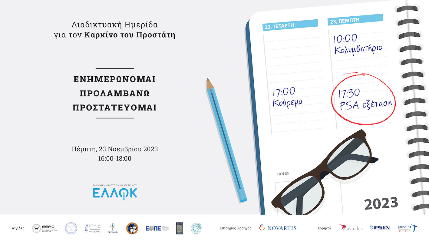 Σημαντικά θέματα σχετικά με την πρόληψη και την αντιμετώπιση του καρκίνου του προστάτη ανέδειξε η διαδικτυακή ημερίδα με τίτλο «Ενημερώνομαι, προλαμβάνω, προστατεύομαι», που οργάνωσε η Ελληνική Ομοσπονδία Καρκίνου – ΕΛΛΟΚ στις 23 Νοεμβρίου 2023.