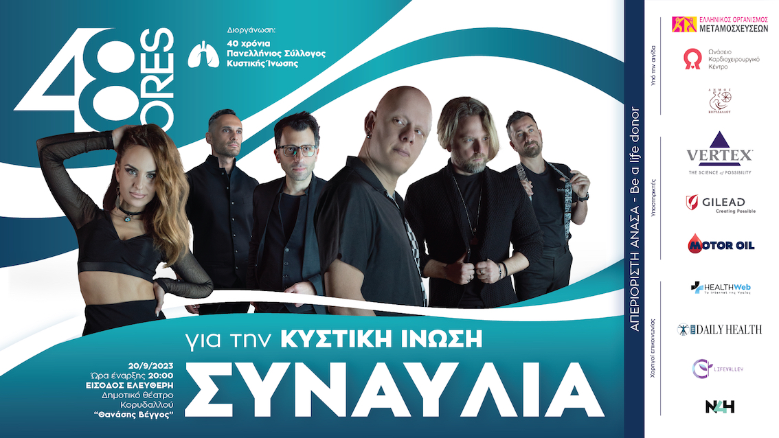 Την επέτειο των 40 χρόνων του γιορτάζει ο Πανελλήνιος Σύλλογος Κυστικής Ίνωσης και οργανώνει συναυλία ευαισθητοποίησης για τη νόσο και τη δωρεά οργάνων με το αγαπημένο μουσικό συγκρότημα «48 Ώρες».