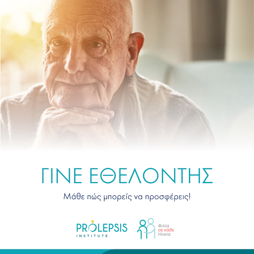 Με αφορμή την Παγκόσμια Ημέρα Τρίτης Ηλικίας (1η Οκτωβρίου), το Ινστιτούτο Prolepsis καλεί όσους πολίτες επιθυμούν, να ενταχθούν ως εθελοντές στο πρόγραμμα Φιλία σε κάθε Ηλικία και να στηρίξουν τους ηλικιωμένους συνανθρώπους μας.
