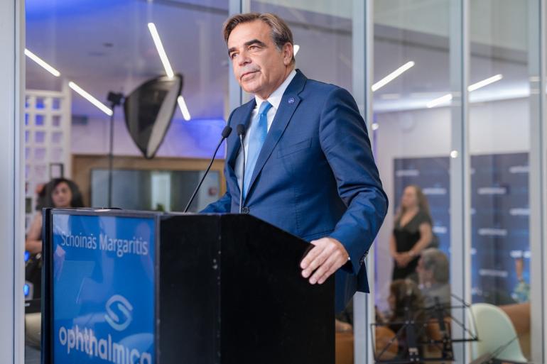 Από την πλευρά του, ο Μαργαρίτης Σχοινάς, τέως Αντιπρόεδρος της Ευρωπαϊκής Επιτροπής, εξέφρασε τη χαρά και την τιμή του να παρευρίσκεται στα εγκαίνια του νέου κτιρίου, υπογραμμίζοντας ότι «το ιατρικό επάγγελμα αποτελεί το θεμέλιο και τον συνδετικό κρίκο του ευρωπαϊκού τρόπου ζωής, βασισμένο στην αρχή ότι καμία κοινωνία δεν αφήνει κανέναν πίσω». Όπως σημείωσε, η ιατρική ομάδα του Ophthalmica «έχει αποδείξει έμπρακτα ότι, πέρα από την επιστημονική αρτιότητα, ενσαρκώνει αυτές ακριβώς τις αξίες — ότι οι υπηρεσίες υγείας ανήκουν σε όλους, όχι σε λίγους». Τόνισε επίσης τη σημασία της διεθνούς συνεργασίας και της προσέλκυσης επενδύσεων, επισημαίνοντας ότι με αυτή την επένδυση «το Ινστιτούτο Ophthalmica αποδεικνύει πως η Θεσσαλονίκη και η Ελλάδα μπορούν και πρέπει να αποτελέσουν πρότυπο εξωστρέφειας και ανάπτυξης με ισχυρή ευρωπαϊκή προοπτική».