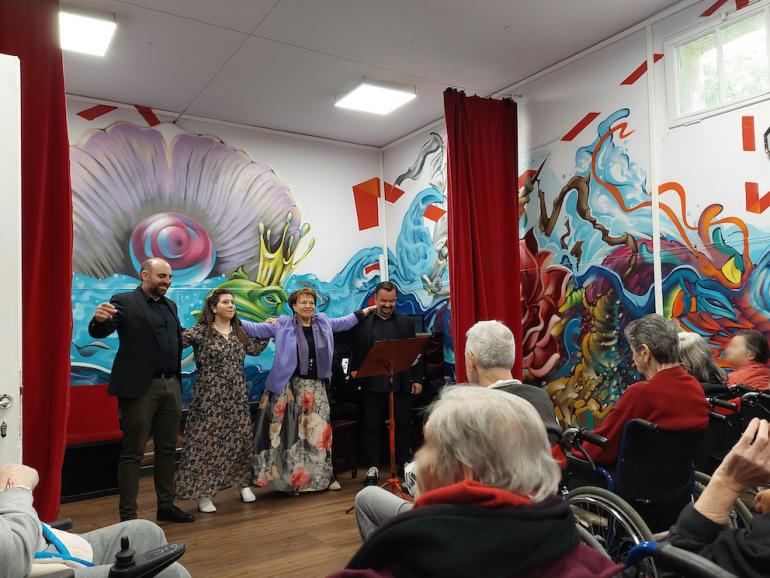 Το Άσυλο Ανιάτων φιλοξένησε, την Τρίτη 9 Μαΐου 2023, ομάδα καλλιτεχνών της Εθνικής Λυρικής Σκηνής στις εγκαταστάσεις του στην Κυψέλη. Η επίσκεψη προσέφερε στους περιθαλπόμενους του Ασύλου την ευκαιρία να ζήσουν από κοντά τη μοναδική εμπειρία μίας παράστασης όπερας