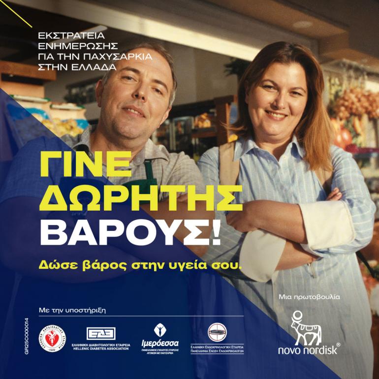 Πρεμιέρα στα μέσα μαζικής επικοινωνίας κάνει η καμπάνια «Γίνε δωρητής βάρους – Δώσε βάρος στην υγεία σου», η ενημερωτική εκστρατεία που παρουσίασε πρόσφατα η Novo Nordisk Hellas. Το μήνυμά της μεταφέρεται πλέον μέσα από τηλεοπτικά και ραδιοφωνικά σποτ, αλλά και από τα social media, φέρνοντας στο προσκήνιο μια νέα αντίληψη για την παχυσαρκία. Μια νόσο που για χρόνια παραμένει παρεξηγημένη, υποτιμημένη και συχνά στιγματισμένη, αλλά σήμερα διεκδικεί την προσοχή και την κατανόηση που της αξίζει.