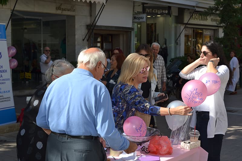 Mε αφορμή τον Οκτώβριο, τον μήνα που είναι αφιερωμένος στην καταπολέμηση του καρκίνου του μαστού οι εθελοντές του ενιαίου παραρτήματος Νέας, Ιωνίας, Νέας Φιλαδέλφειας, Ηρακλείου και Μεταμόρφωσης (Ν.Ι.Φ.Η.Μ.) της Ελληνικής Αντικαρκινικής Εταιρείας πλημμύρισαν τον πεζόδρομο της οδού Μικράς Ασίας στην Νέα Ιωνία και παρουσίασαν την δική τους -εξαιρετική- συμμετοχή.