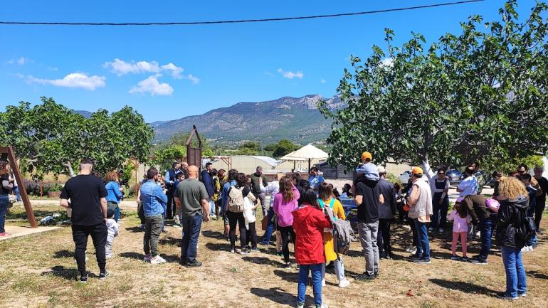 Η διευθύντρια του Κέντρου κα Ελένη Περγάντου έδωσε το παρών απευθύνοντας χαιρετισμό ενώ στη συνέχεια μικροί και μεγάλοι απόλαυσαν γεύμα φτιαγμένο εξ ολοκλήρου από τα βιολογικής καλλιέργειας προϊόντα του κτήματος.